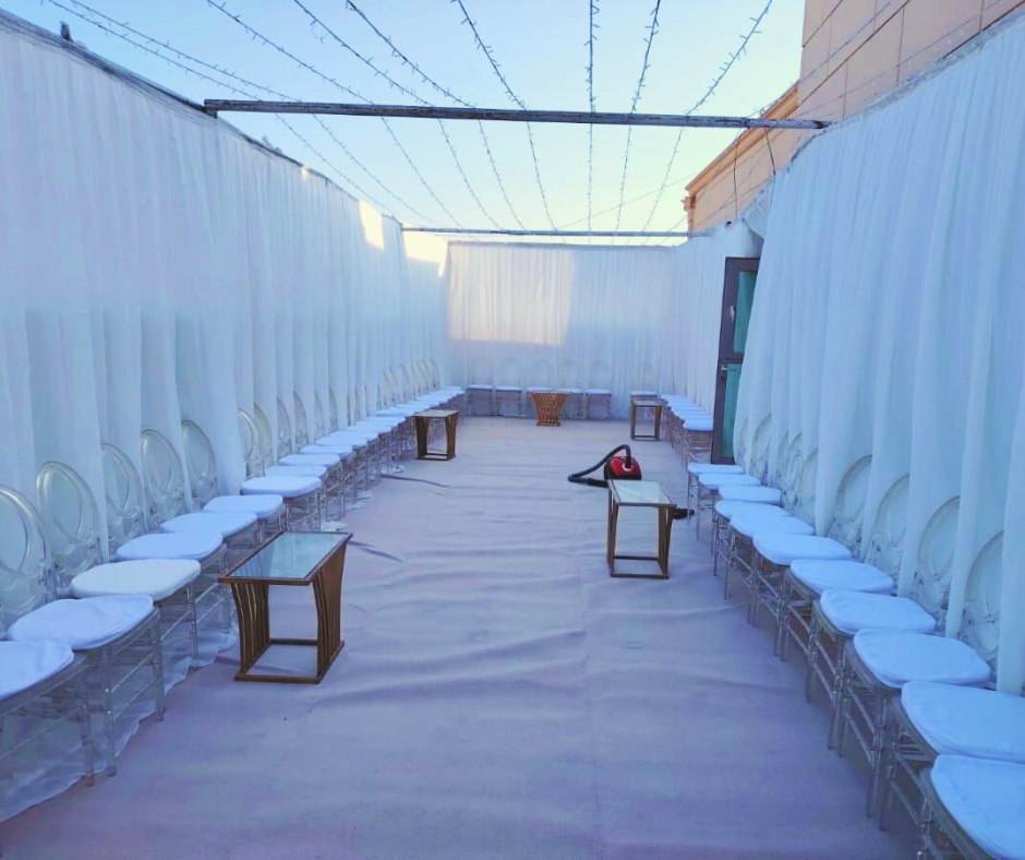 نوفر تشكيلات متنوعة من الكراسي (فندقية – نابليون – استرتش – ملكي) والطاولات (خام – مضيئة – دائرية – مستطيلة) لتلبية احتياجات مناسبتك.