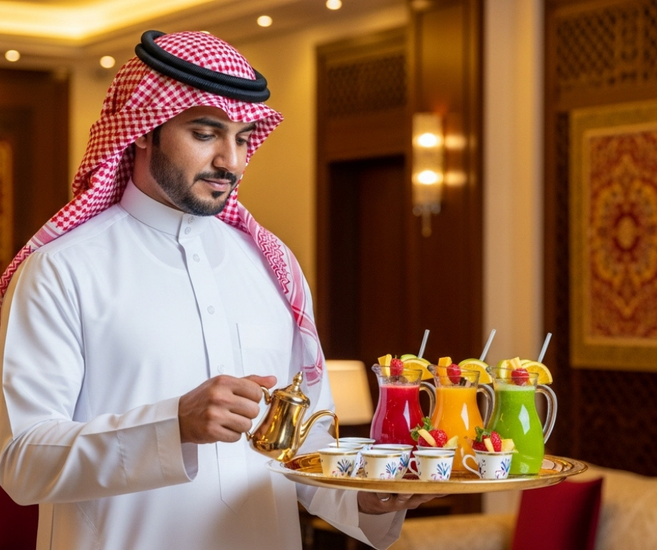 تقديم أفخر أنواع الشاي والقهوة العربية مع صبابين محترفين، لنجعل ضيافتك أصيلة وراقية أمام ضيوفك.